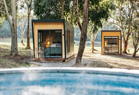 The three little sleep pods are a cosy accommodation option, nestled into the bushland on the edge of the golf course. Featuring queen beds, heating and air conditioning, veranda with seating to relax and enjoy the views and nearby access to the bathrooms and kitchenette in the Gazebo. Sleeping up to 2 guests each.